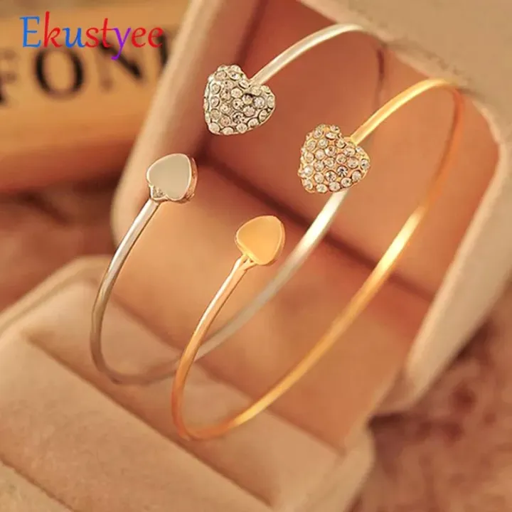 2 pieces Golden silver Double hearts fashion Adjustable bracelets