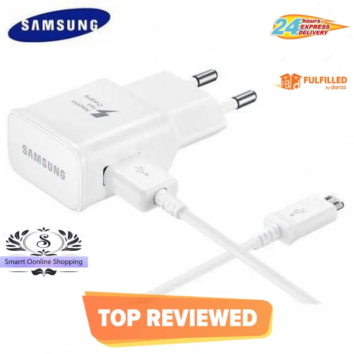 Fast Charger For Samsung 2-Amp Adapter with Micro USB Data Cable for Galaxy S7/S7 Edge/S6/Edge/Edge+/Note Edge/ J3 & Other Smartphones - White