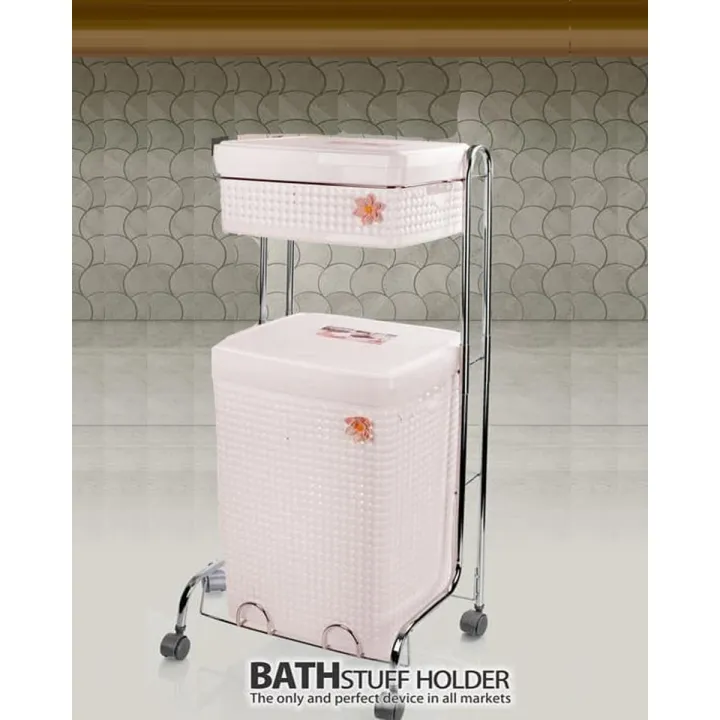 2 Tier Rolling Laundry Basket Shelves Storage Organizer for Clothes Detergent Great for Bathroom Kitchen Laundry Room