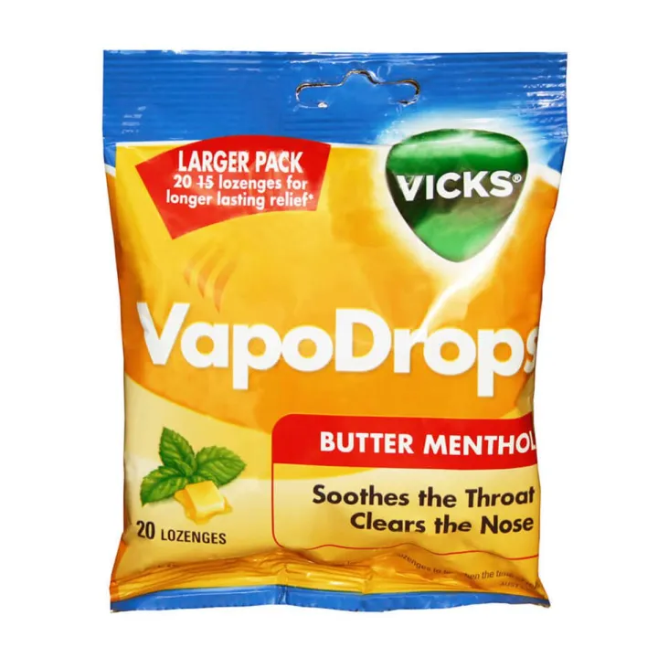 20 LOZENGES - Vicks Vapodrops Menthol - Throat and Nostril Clearing Candy