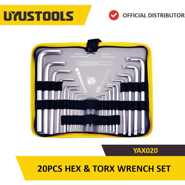 20PCS%20HEX%20&%20TORX%20WRENCH%20SET%20Chrome%20Vanadium%206150,%20Heat%20Treated,%20Chrome%20Plated%20With%20a%20Canvas%20Bag%20Double%20Blister%20Packaging%20-%20UYUSTOOLS%20YAX020%20-%20Image%201