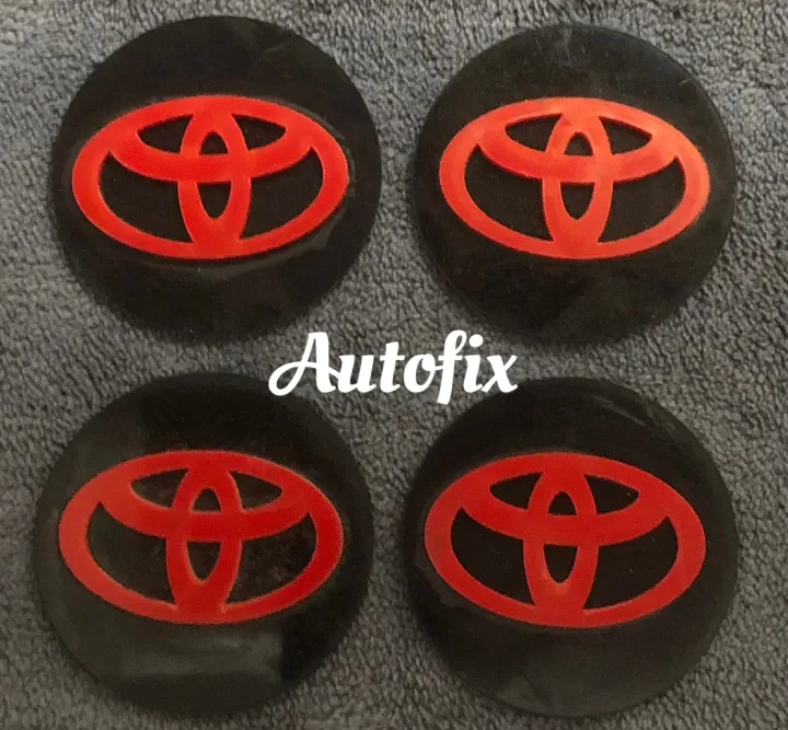 Toyota wheel center cap Plastic DECALS Black N Red 2.2 inches 04 PCS