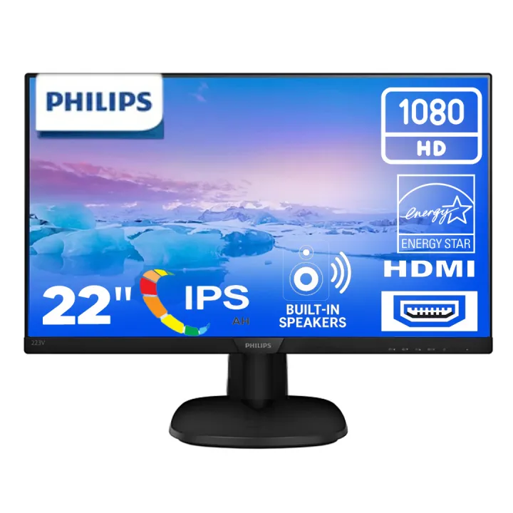 22" Inch IPS Full HD, 1920x1080 HDMI, VGA, BUILTIN Speakers, Back-lit LED Monitor, ENERGY STAR 8.0 Black