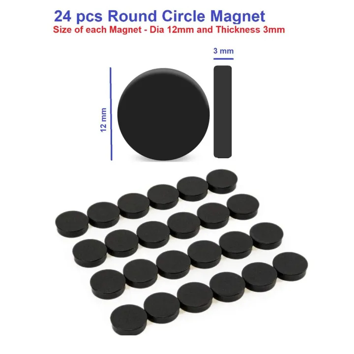 24pcs 12mm dia Black Round Circle Magnets Perfect as Whiteboards, Lockers, Fridge Magnets & for educational purpose