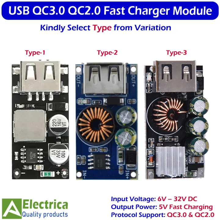 USB QC3.0 QC2.0 Quick Charger Module | 24W 5V 3.4A Single USB Output | Fast Charging Board for Mobile Power Bank & DIY by Electrica
