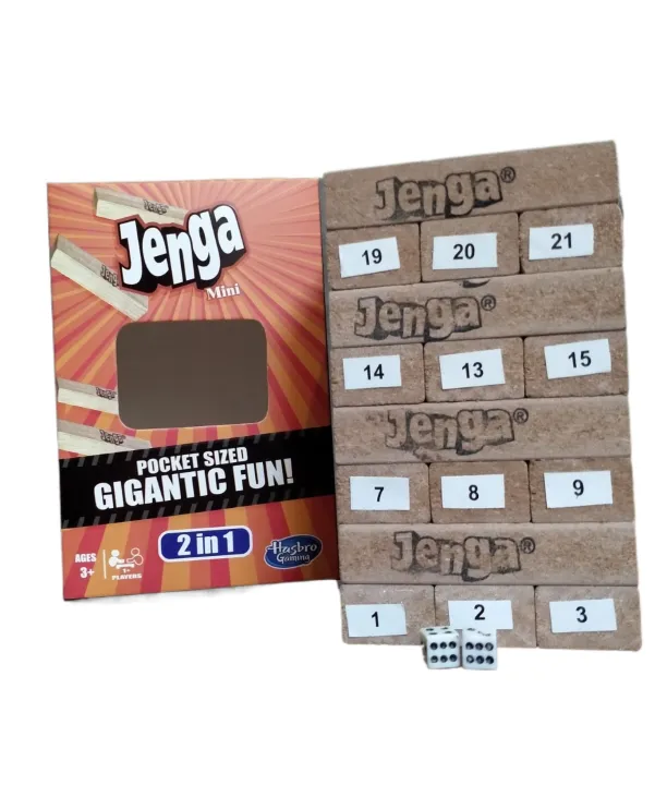 2in1 Jenga Mini Classic Jenga Wooden Stacking Tower Game for Kids & Adults - 24 pcs woods