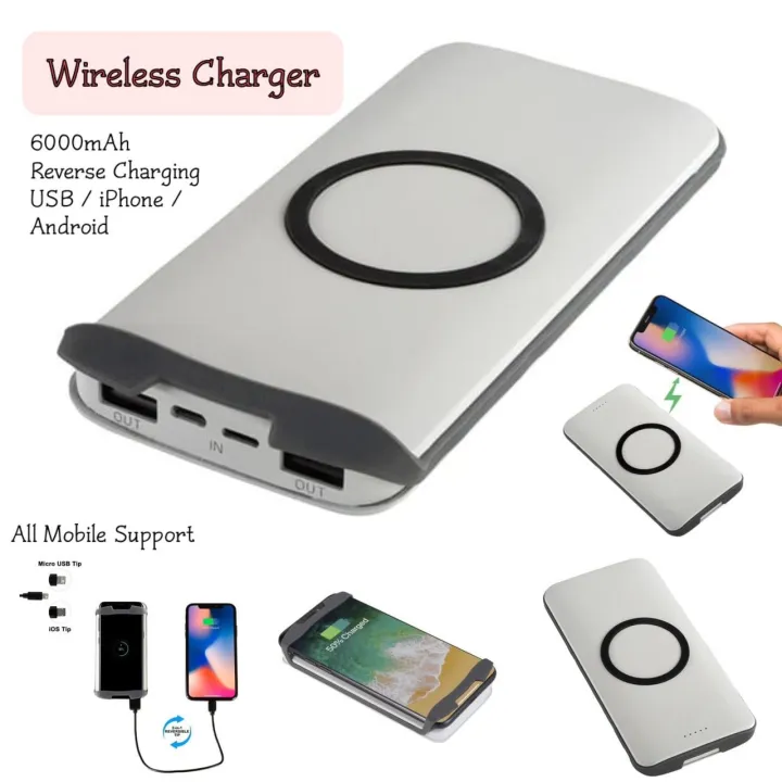 2in1 Wireless Phone Powerbank Charger with Reverse Charging Support Fast Power Bank 6000mAh Rechargeable(Wireless and Wire Both Options)