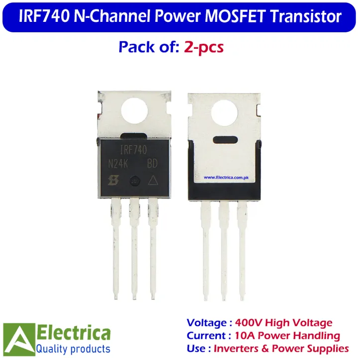 2Pcs Original IRF740 N-Channel Power MOSFET Transistor | High Voltage 400V 10A Fast Switching MOSFET for Inverters, Power Supplies & DIY Electronics by Electrica