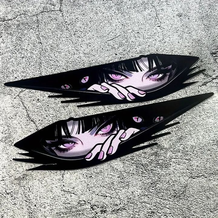 2pcs Set of Laser Effect JDM Anime Girl Eyes Stickers: Cool Laser Texture, Combines JDM Style with Anime Design, Scratch-Resistant and Waterproof for Cars, Motorcycles, PC Cases – Add a Trendy Touch to Your Items