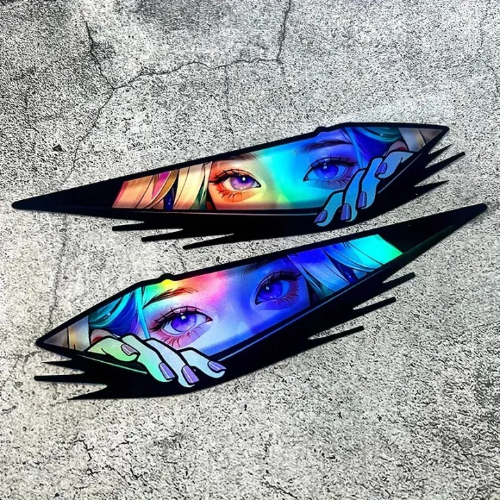2pcs Set of Laser Effect JDM Anime Girl Eyes Stickers: Cool Laser Texture, Combines JDM Style with Anime Design, Scratch-Resistant and Waterproof for Cars, Motorcycles, PC Cases – Add a Trendy Touch to Your Items