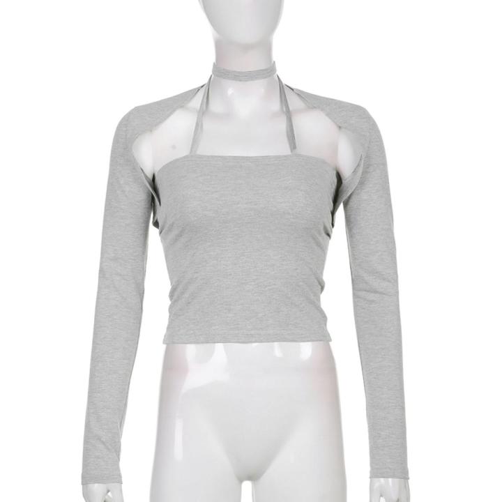 2Pcs%20Women%20Summer%20Crop%20Tops,%20Solid%20Color%20Halter-Neck%20Sleeveless%20Tank%20Tops%20+%20Long%20Sleeve%20Coat%20for%20Girls,%203%20Colors%20-%20Image%204