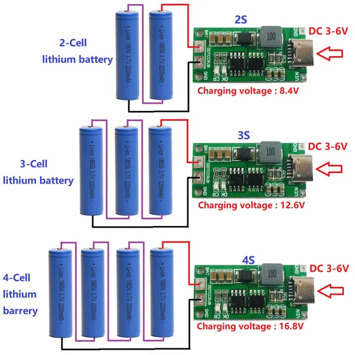 2S 3S 4S Type C to 8.4V 12.6V 16.8V Boost Polymer LiPo 7.4V 11.1V 14.8V 18650 Multi-Cell Lithium Battery Charger by Electrica