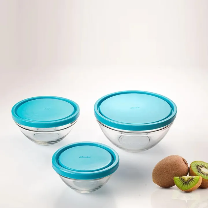 3 piece Glass bowl set with plastic lid BOWLS 3-Piece Glass Bowl Set, Nesting Glass Mixing / Storage Bowls with Lids, Stack able Storage Bowl Set, Container with Plastic lid
