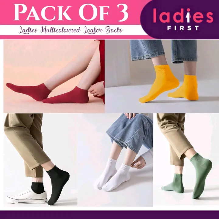 Verdrobe - Pack Of 3 & 6 - Stretchable Fancy & Beautiful Coloured Plain Half ( Ankle Length ) Loafers Socks For Girls & Womens ( Multicoloured )