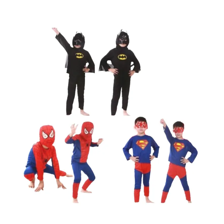 3 pack of Full Costume Dress (Top+Pent+Mask) for kid's Spiderman+Batman+Superman (2 years to 10 years)
