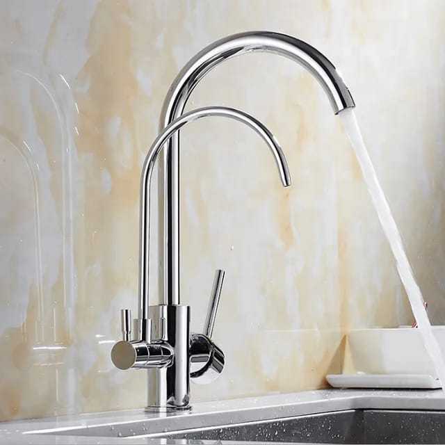 3 Way Kitchen Sink Faucet Mixer Brass Chrome Hot & Cold Filter Tap for Purified Drinking Water