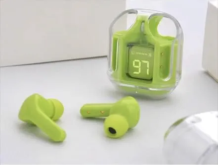 Air31 Wireless Headphones LED Power Digital Display Stereo Sound Bluetooth-compatible V5.3 Transparent Earphones for Sports Working