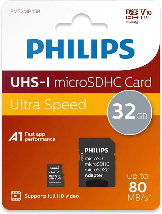 PHILIPS 32GB Micro SDHC UHS-1 U1 & V10 Class 10 Flash Memory Card with Adapter