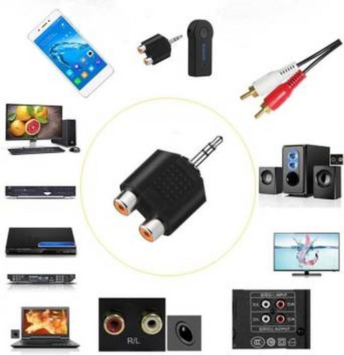3.5 mm AUX Male to 2 RCA Female Audio Adapter for Computer Speaker Earphone Headphone Stereo AUX Splitter Connector, Universal 3.5mm Stereo Male to Dual RCA Female Video Audio Splitter Adapter