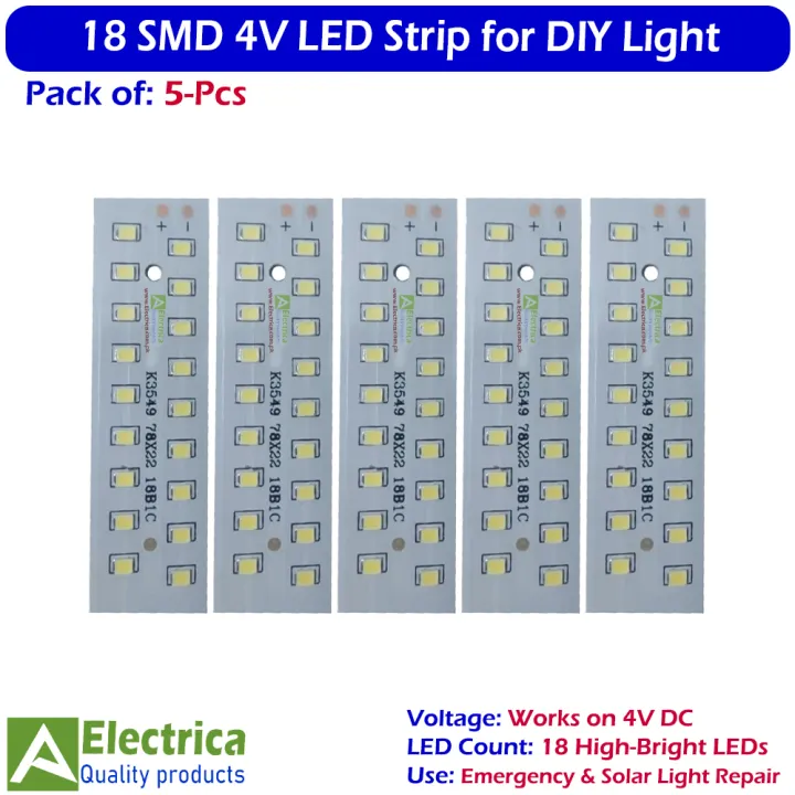 5Pcs 4V High Brightness LED Bar Light 18 SMD Strip for DIY Lantern, Emergency Light, Solar Projects & Small Battery Lamps | Energy Efficient & Long Life by Electrica