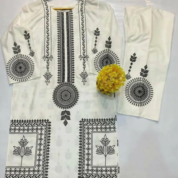 Trend 3D block Printed High Quality 2pcs arabian Lawn suit for ladies/girls