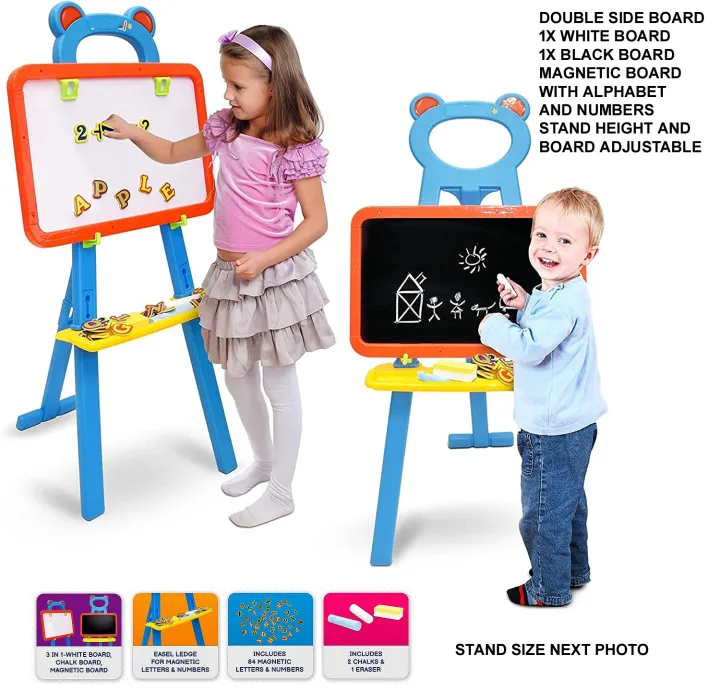 3in1%20Learning%20Easel%20Double%20Sided%20Black%20And%20White%20Drawing%20Board%20Magnetic%20Board%20and%20Chalkboard%20Art%20Activity%20Drawing%20for%20Artist%20with%20Learning%20Magnetic%20Alphabet%20And%20Numbers%20Chalk%20and%20Eraser%20-%20Image%201