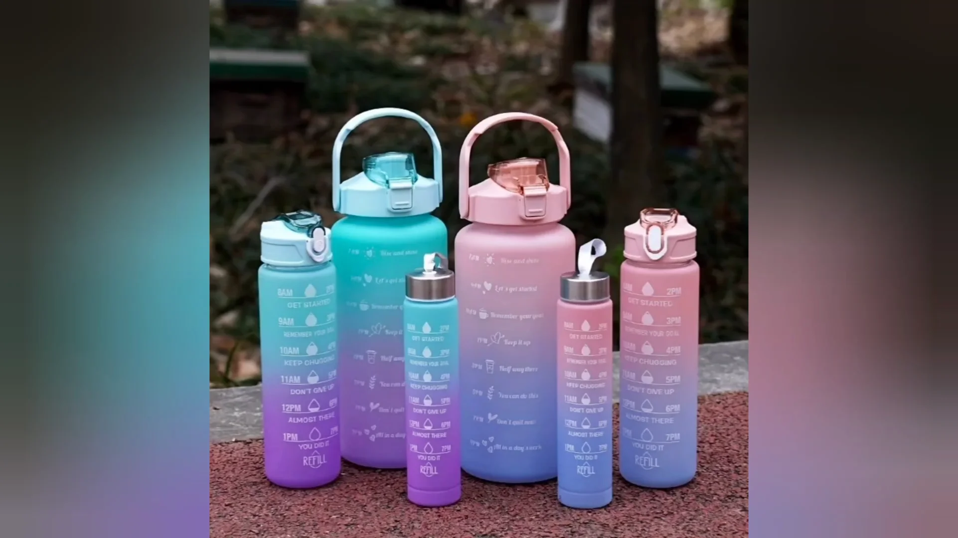 3pcs | 2pcs Motivational Water Bottle With Straw | 2L Gradient Color Drinking Water Bottle