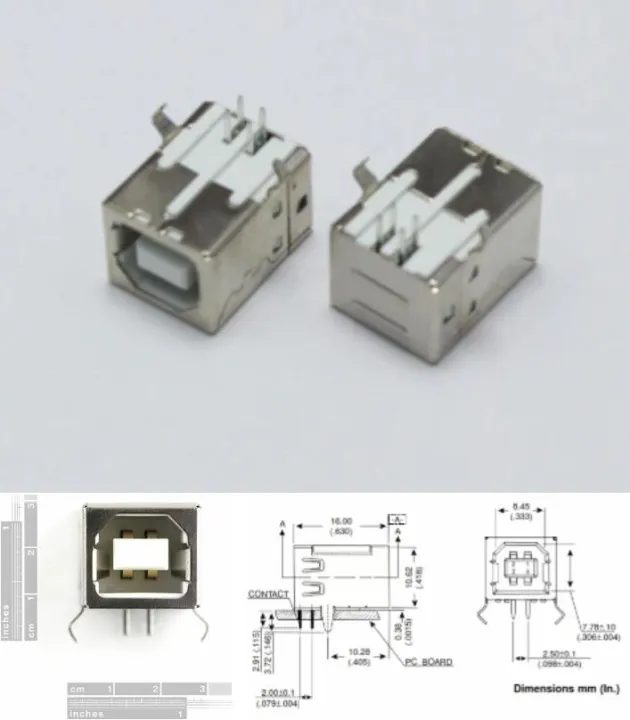 3pcs USB Female Type B Connector Arduino 4-Pin Right Angle DIP Jack