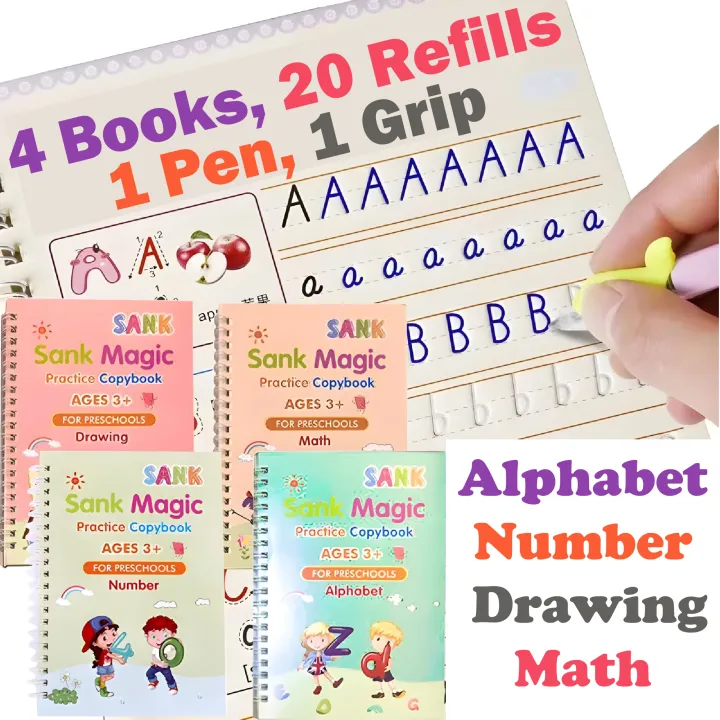 REUSABLE SANK MAGIC BOOK MONTESSORI KIDS | 4 BOOKS 20 REFILLS 1 PEN | MAGIC BOOK for KIDS | MAGIC BOOKS | SANK MAGIC BOOK for KIDS WRITING | REUSABLE BOOKS | MONTESSORI BOOK