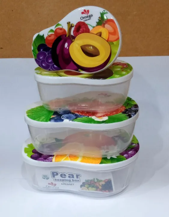 Pack of 4 Pear Bowls Set (With Fruity Design Lid)