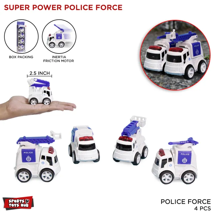4 in 1 Rescue Police Metal Diecast Model Cars Toys For Kids Friction Powerd Play Police Rescue Car / Truck Set Including Fire Truck Water Cannon Vehicle Ladder Truck Police Car Ambulance Fire Rescue Vehicle Collection For Kids Toy Photography
