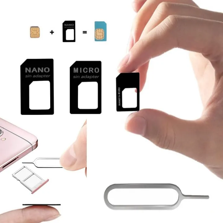 4 in 1 Sim Card Jacket Kit Nano, Micro With Ejector Pin Black And White 4in1 Set Nano Micro Standard Sim Card Adapter Sim Ejector For Mobile Phone Black/White
