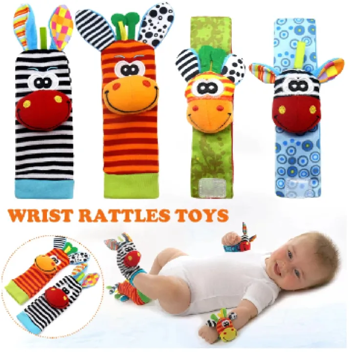4 Pcs Baby Rattle Animal Socks Wrist Strap + Baby Socks Foot Finder Educational Hand bells Cute Giraffe Cartoon Baby Toy