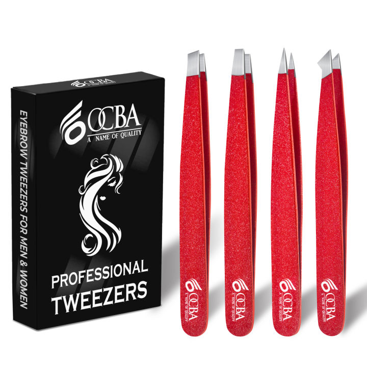 OCBA Professional Eyebrow Tweezers Set Stainless Steel Slanted Tip Tweezers for Eyebrows Plucking, Ingrown Hair, Splinter Hair and Facial Hair Remover Suitable For Men & Women