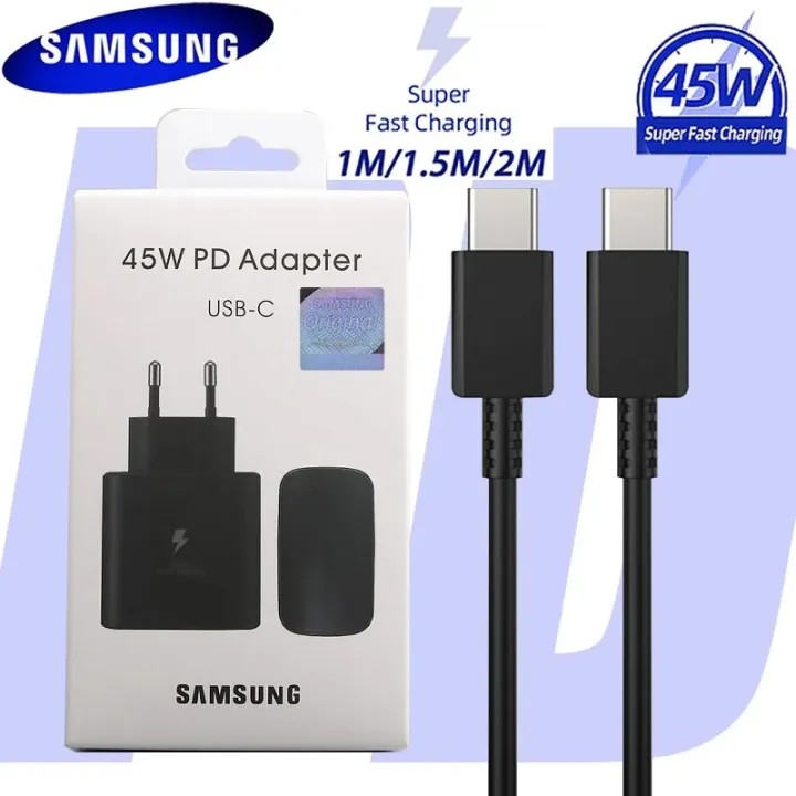 Samsung 45W Super Fast Charger with Type C to Type C Cable PD Certified for All Mobile Phones