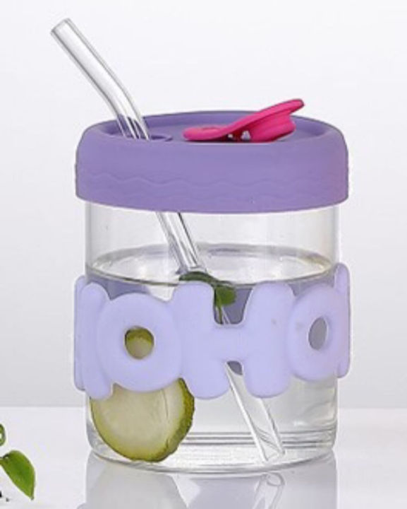 470ml Juice Glass with Straw and Silicone Lid - Glass for Water - Tumbler - Glass - Cup - Tumbler with Straw - Glass for Juice - Sipper - Fancy Juice Glass with Straw for Kids & girls - Coffee Cup with Silicone Lid and Glass Straw for Tea and Coffee Mug