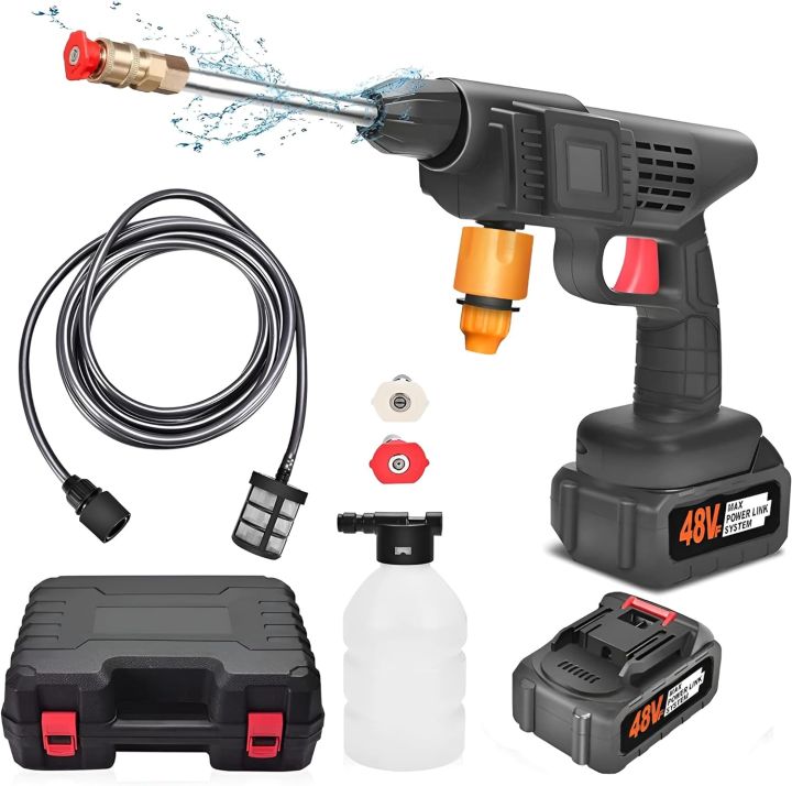 48V High Pressure Water Gun with Nozzles - Water Pressure Gun Set - Pressure Washer Gun - Car Cleaning Kit with Snow Foam Lance, Cannon Foam Blaster, Pressure Washer Nozzle Tip, And Jet Wash Gun