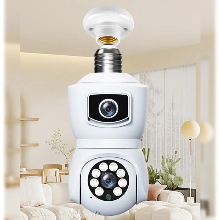 4MP (2+2) V380 APP Dual Lens E27 Lamp Head Socket Outdoor Ceiling Mount Auto Tracking Speed Dome PTZ Color Night Vision Camera