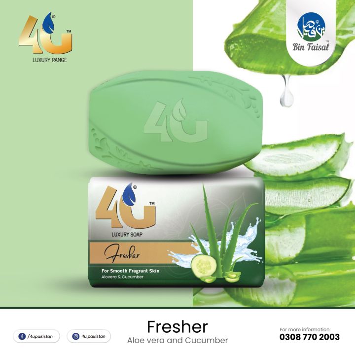 4U fresher luxury soap 125gram with Alovera & Cucumber for all types of Skin