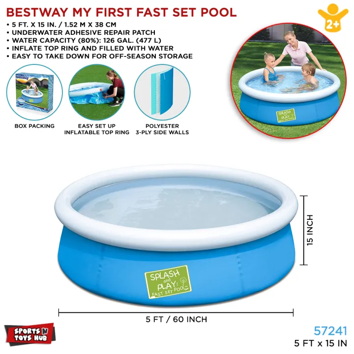 5 Ft Bestway Inflatable Fast Set Swimming Pool For Kids & Family 60 Inch Width Inflatable Solid Sidewall Large Swimming Pool With Vinyl Deep 15 Inch Depth Water Splash Fun Party Game Indoor & Outdoor Picnic With Family Fast Easy & Simple to Assemble 57241