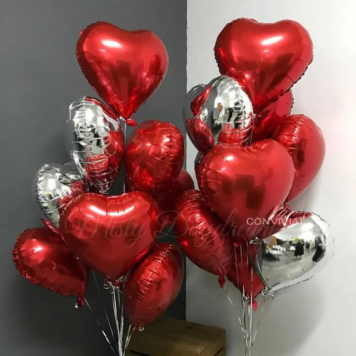 5 Pieces Heart Shaped Helium Foil Balloon 18 inches Colors Golden, Silver, Rose Gold, Pink, Red, Blue, White and Black - Birthday Wedding Decoration Party Supplies Heart Shaped Balloons Bridal Shower Baby Shower