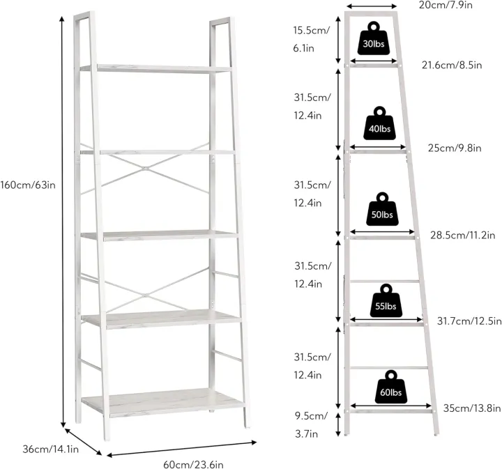 5-Tier Ladder Shelf Bookcase with Metal Frame, Industrial Bookshelves Storage Rack