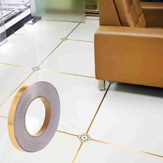 Tile decorative tape | Tile Gap tape | For wall , Tile , Furniture , Door decoration |Sticker Waterproof | 50 Meters Golden Tape | Cearamic Tape | Tile stickers for flooring | tile decoration tape | Gap Sealing Tape | (1cm x 50m, Golden) | Free shipping