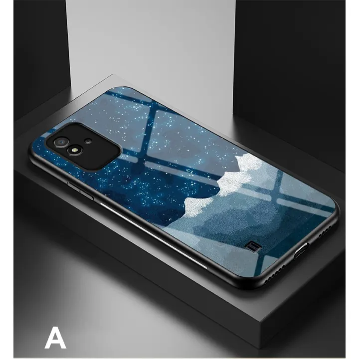iCaseCover for Realme Narzo 50i Shockproof Starry Colorful Tempered Glass Back Soft Silicone Edge Case Cover