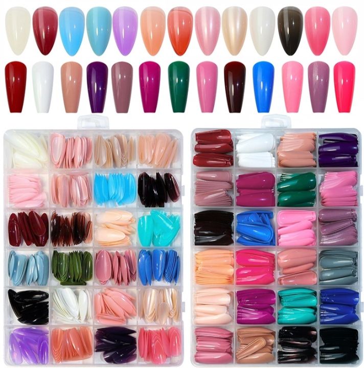 576 Pcs Box Colorful Artifical Nails Acrylic Full Cover Nail | Fake Nails | Fancy Artifical Nails | French nails | Nails For girls In Multicolours