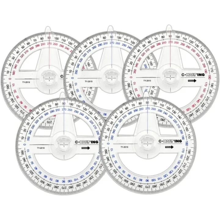 5pcs 360° Plastic Protractor Math Protractors Clear Protractor Ruler Drafting Tools Circle Protractor for Geometry