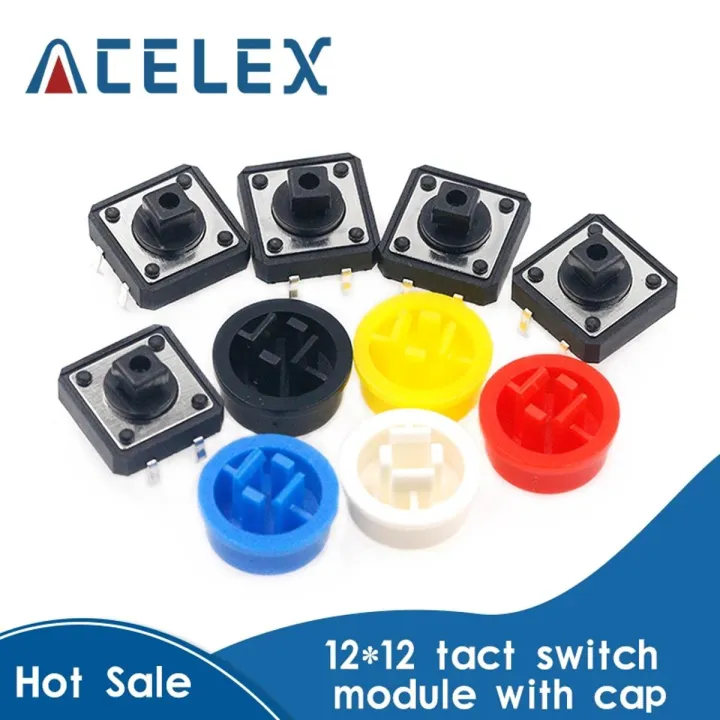 5PCS Tactile Push Button Switch Momentary 12*12*7.3MM Micro switch button + 5PCS Tact Cap(5 colors) for Arduino Switch