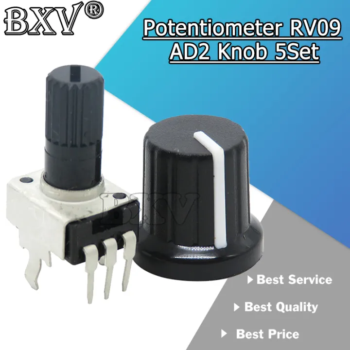 5Set=10PCS RV09 (5PCS+5PCS) Vertical 1K ~ 500K Ohm Adjustable Resistor 3Pin Seal Potentiometer For Arduino With Knob White Cap