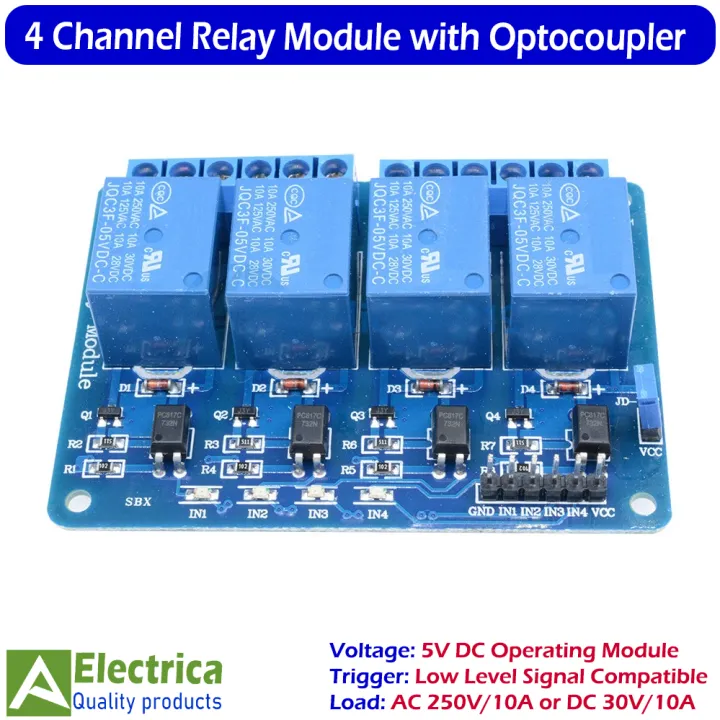 4 Channel Relay Module 5V with Optocoupler Isolation, Low Level Trigger Compatible with Arduino, Raspberry Pi, PIC, AVR, ARM & Smart Home Automation Projects by Electrica