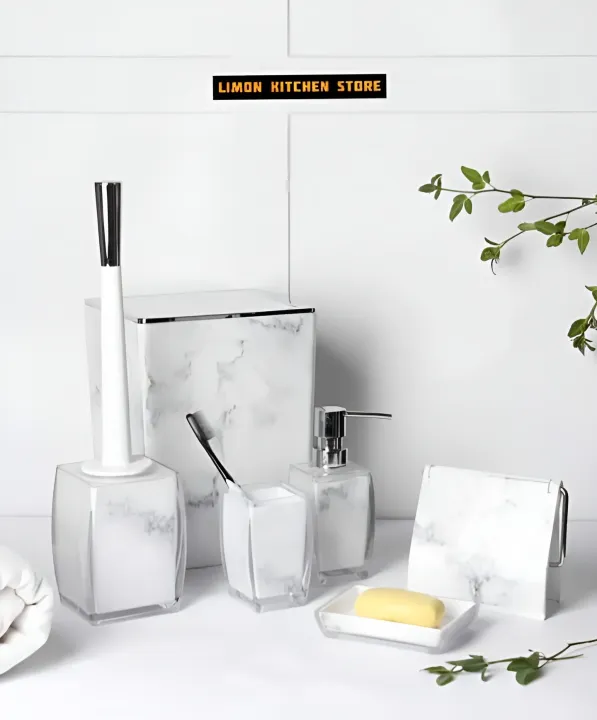 Limon 6 Pcs Classic Marble Design Bathroom Set